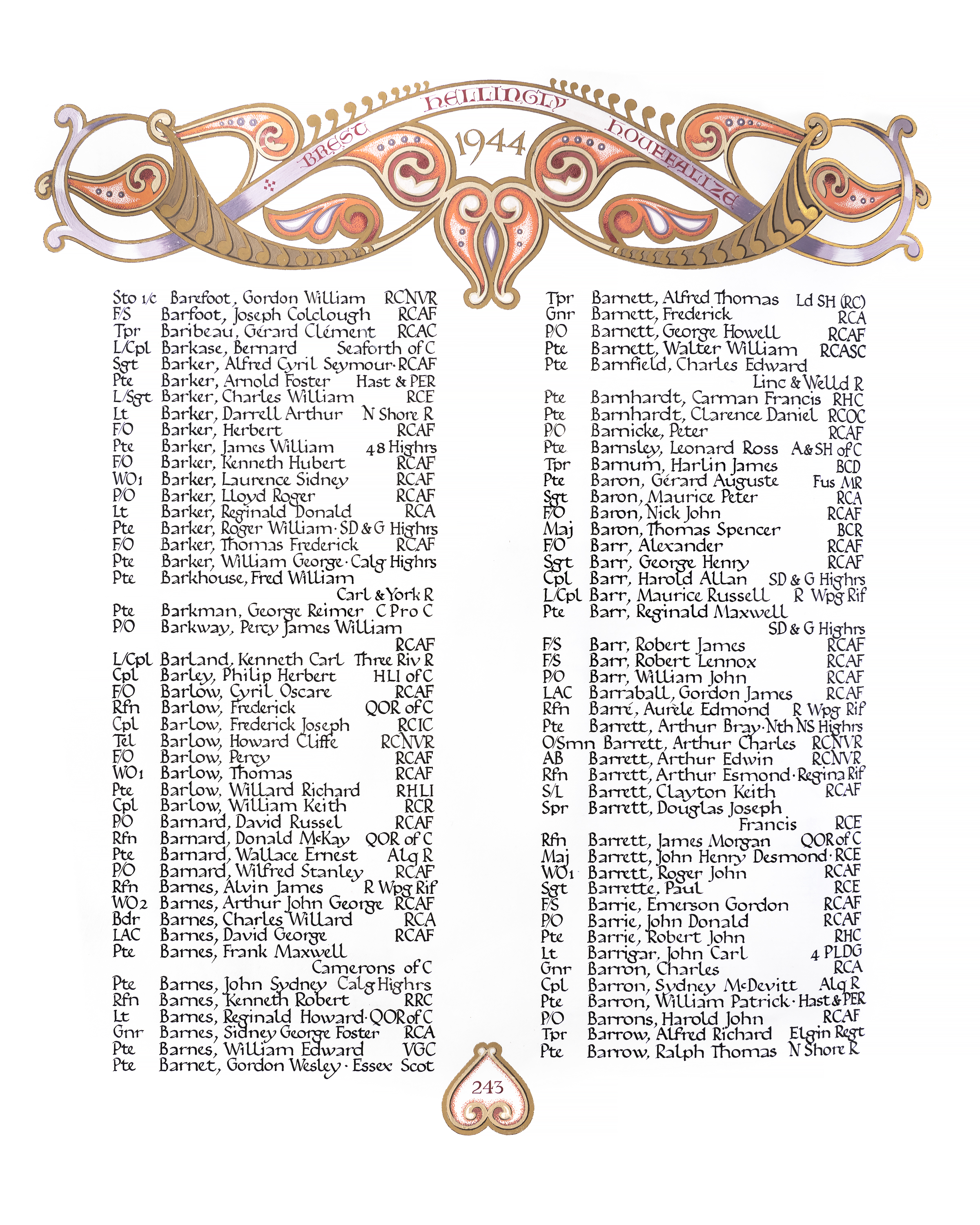 Telegraphist Barlow died when HMCS SHAWINIGAN was sunk by U-1228 on 24 Nov 1944. Of her crew of 91, there were no survivors. Tel Barlow's body was recovered and he was buried in the Mount Royal Cemetery, Montreal, Quebec.