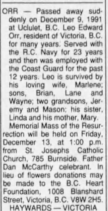 Died: 09 Dec 1991, Uclulet, British Columbia