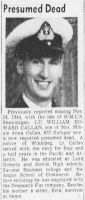 (WC01) Lt Callan presumed dead - The Winnipeg Evening Tribune (WC02) Documents from the Service File of William Callan