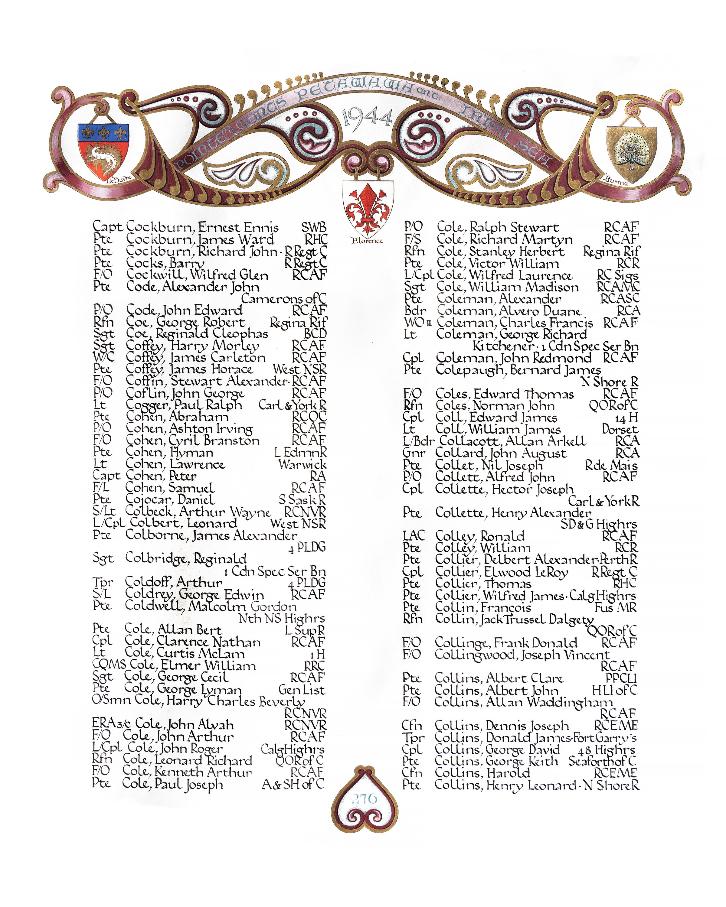 OS Cole died when HMCS SHAWINIGAN was sunk by U-1228 on 24 Nov 1944. Of her crew of 91, there were no survivors.