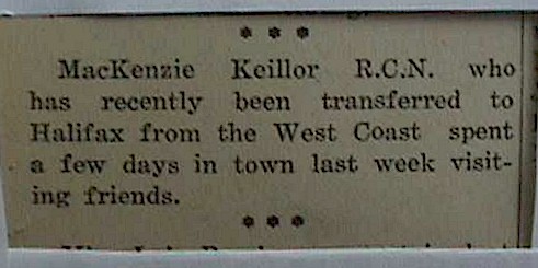 KEILLOR, Frederick MacKenzie - Age 89, died peacefully at home September 14, 2018. Cremation has taken place; interment will be held at a later date. As per Fred's request there will no visitation or service. In lieu of flowers, donations may be made to Royal Canadian Legion Branch 88, Chester Basin, 902-275-4767. Fred was a past president of Nova Scotia Command, Royal Canadian Legion and a member of many other local and national organizations. He is survived by his wife, Margaret (Young); daughter, Nancy (Al) Peers; son, Stuart (Buffy) Keillor; grandchildren, Mackenzie and Morgan Keillor; brothers, Ramsay and James Keillor. Many thanks to friends and family for their support through difficult times. (The Halifax Chronicle-Herald, Wed., 26 Sep 2018)