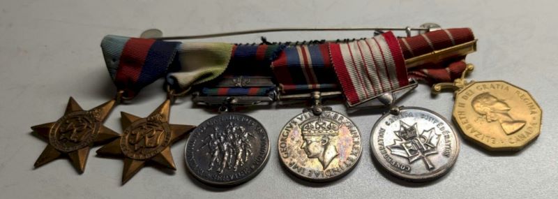 Stanley's medals:  1939-45 Star, Atlantic Star, CVSM with clasp, War Medal 1939-45, Canadian Centennial Medal; Canadian Forces Decoration (C.D.)