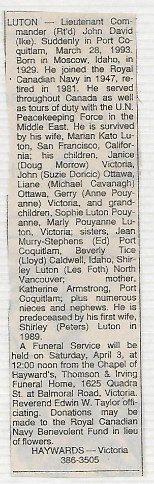 Died: 28 Mar 1993, Port Coquitlam, British Columbia