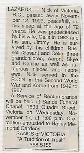 Died: 12 Nov 1993, Victoria, British Columbia