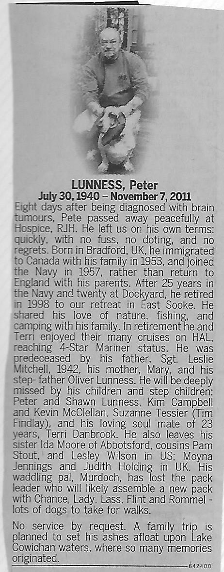 Peter served in the Navy 21 Jan 1958 - 28 Mar 1981