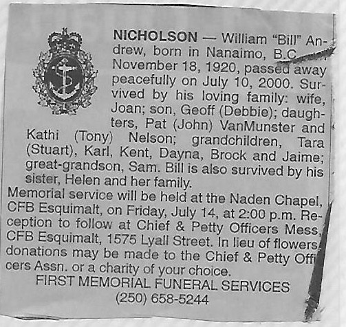 Born: 18 Nov 1920, Nanaimo, British Columiba