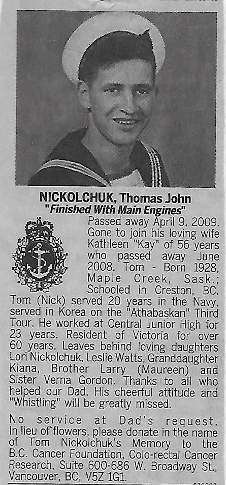 Served in the RCN 01 Mar 1946 - 01 Mar 1965