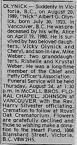 Died: 20 Aug 1989, Victoria, British Columbia
