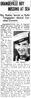 (RH01) Article from the Toronto Telegram Sep 1944 on Roy Hunter and his brother Bill Hunter, both on Active Service (RH02) Article from the Toronto Telegram Dec 1944 on Roy Hunter Missing at Sea (RH03) Documents from the Service File of Roy Hunter