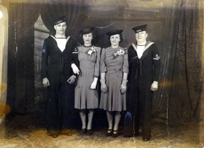 (CS01) CPO Sansone on unknown cruiser (CS02) Service Documents from Constan Sansone Constan and Mary (Peters) Sansone on left. Other couple unknown. Source: Obituary for Mary Sansone