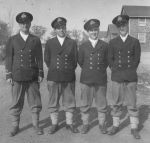SLt John Bourns on unknown ship (JB04) L-R: SLTs Jim, Fred, Bud and John Bourns - believed to be at STADACONA II (HMCS PEREGRINE) (JB05) SLt (Engineers) in training - STADACONA II, 14 Jun 1944. John Bourns - middle row, 6th from right. STADACONA II was renamed HMCS PEREGRINE 01 Oct 1944. This photo is also posted on the page for HMCS PEREGRINE with students numbered for identification purposes.
