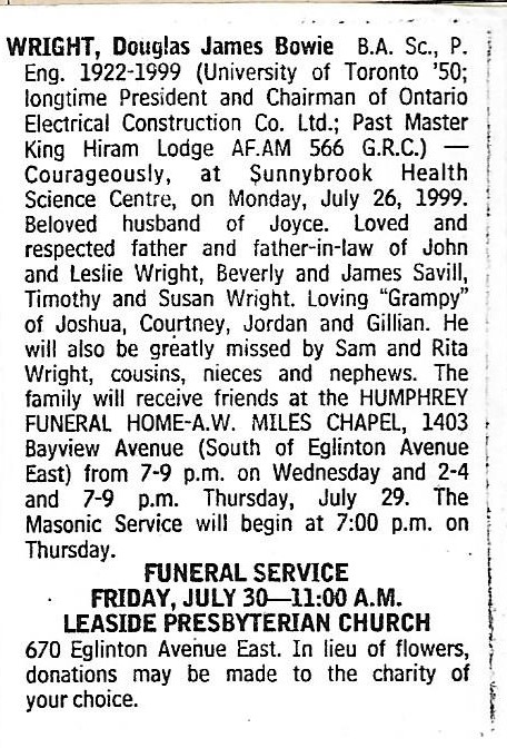 Died: 26 Jul 1999, Toronto, Ontario