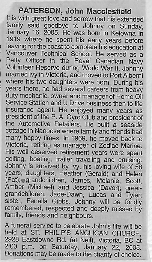 Born: 26 Feb 1919, Kelowna, British Columbia