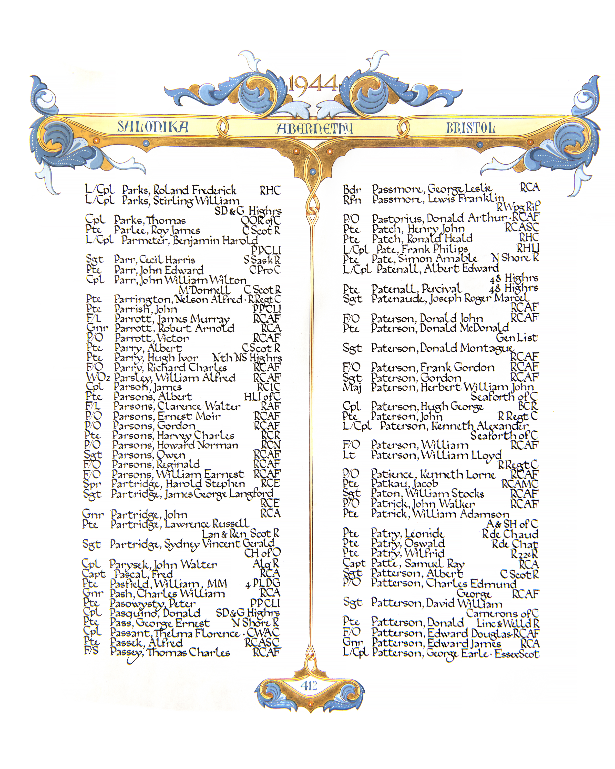 P.O. Parsons attended King, George and Tache schools. He enlisted June 15, 1941 and trained in Esquimalt, British Columbia and Halifax. P.O. Parsons was a Winnipeg Tribune carrier for four years prior to the war. (The Winnipeg Tribune December 07, 1942)