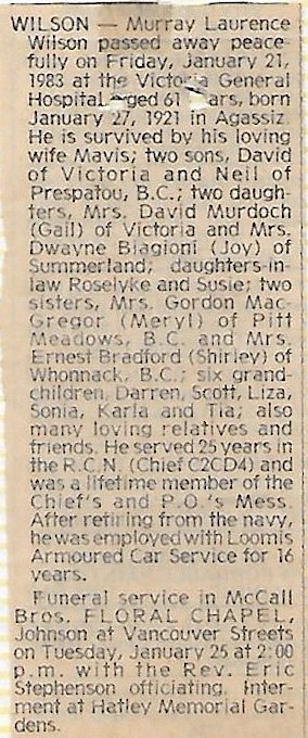 Born: 27 Jan 1921, Agassiz, British Columbia