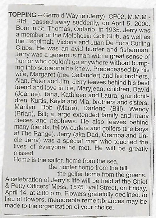 Gerald Wayne (Jerry) Topping, M.M.M. , C.D.