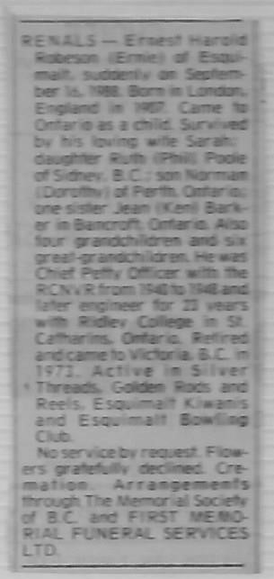 Ernest Harold Roberson (Ernie) Renals
