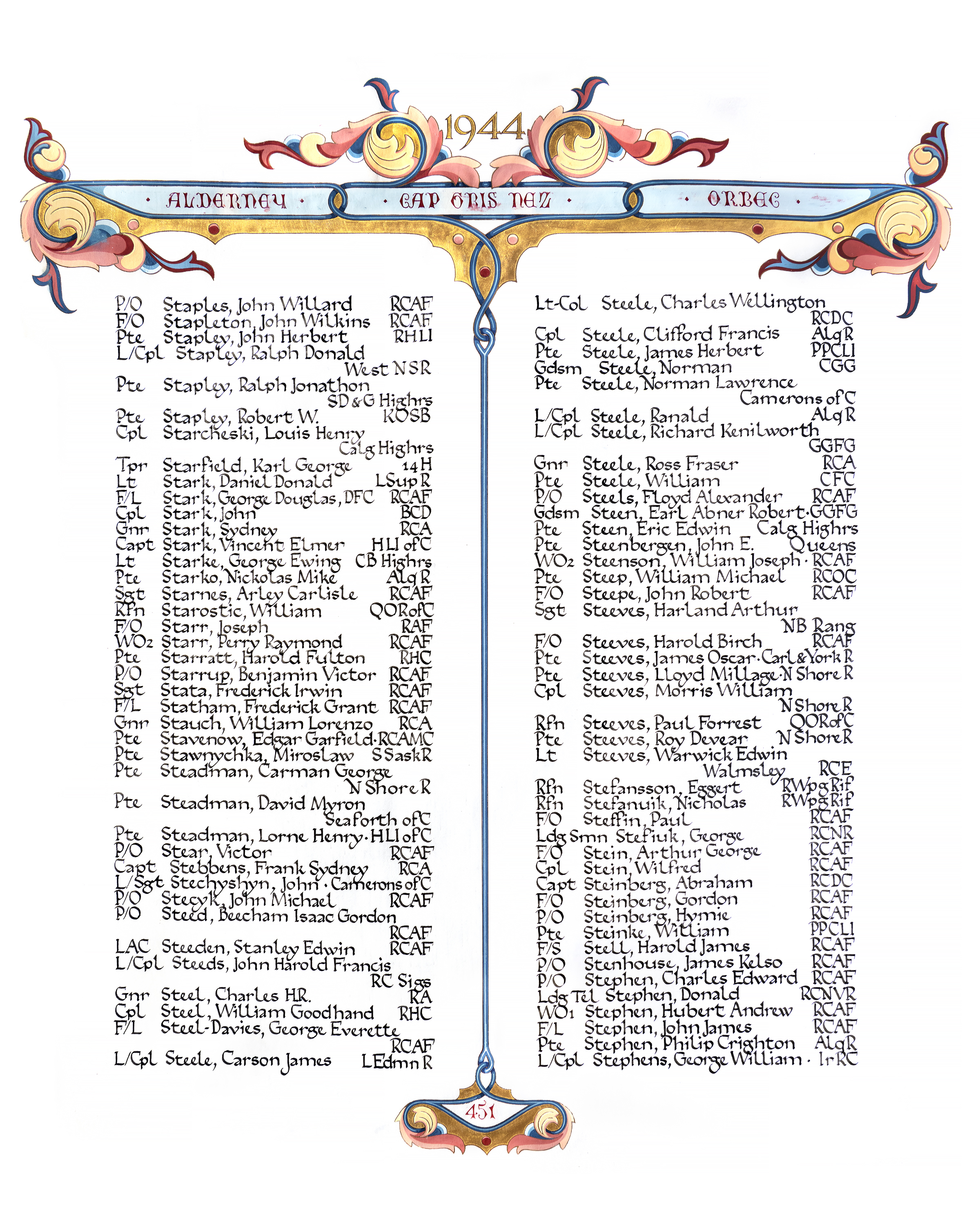 Ships served in: HMCS NADEN - Enlisted 30 Apr 1942 as an Able Seaman, RCNR HMCS SANS PEUR - Drafted to SANS PEUR 20 Oct 1942 HMCS NADEN - Drafted to NADEN 07 May 1943 * Rated Quarters Rating 3rd Class, RCNR 19 Jun 1943 RCN COLLEGE - Drafted to RCN COLLEGE 02 Jul 1943 HMCS GIVENCHY - Drafted to 06 Aug 1943 HMCS STADACONA - Drafted to STADACONA - 11 Aug 1943 * RATED Provisional Leading Seaman, RCNR 15 Sep 1943 HMCS NIAGARA - Drafted to NIAGARA 01 Nov 1943 HMCS STADACONA - Drafted to STADACONA 14 Mar 1944 HMCS CORNWALLIS - Drafted to CORNWALLIS 16 Mar 1944 * Rated Quarters Rating 2nd Class 31 May 1944 HMCS STADACONA - Drafted to STADACONA 08 Jun 1944 HMCS SHAWINIGAN - Drafted to SHAWINIGAN 10 Jun 1944