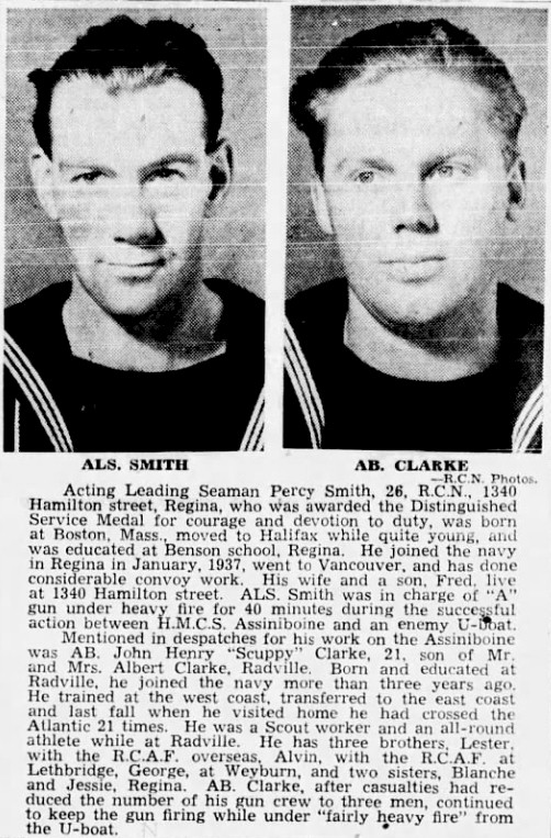 SMITH, Percy, Acting Leading Seaman, 2821, Distinguished Service Medal (DSM), RCN, HMCS ASSINIBOINE - Awarded as per Canada Gazette of 12 December 1942 and London Gazette of 3 December 1942.