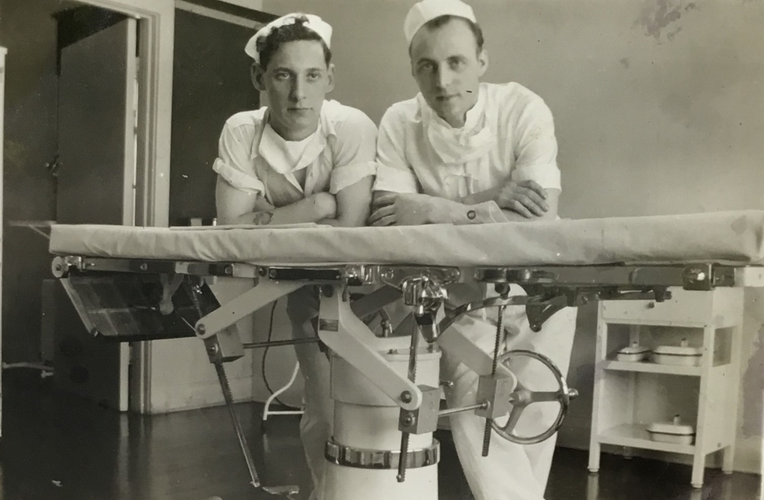 Training in Halifax (HF04-HF05) Stan Beasley in the operating room (HF06) Unknown nurses and doctor (or possibly a student) in the operating room (HF07) Stan Beasley (right) and Bill