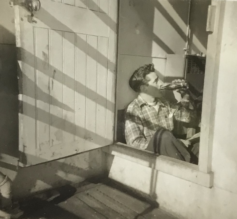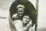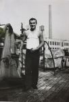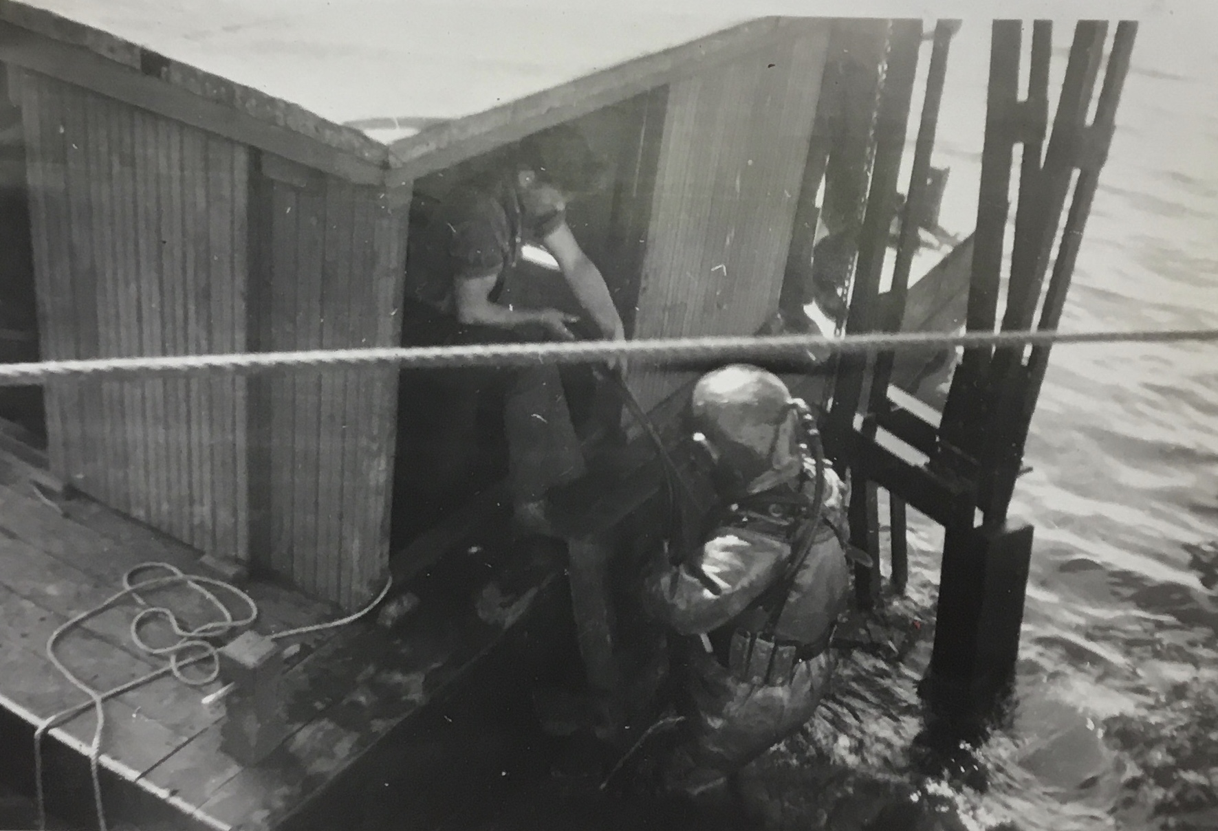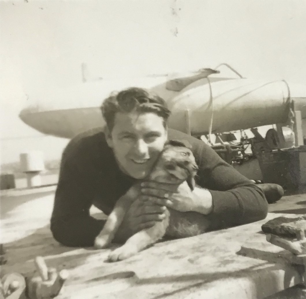 (HF53) Howard Finkbeiner on his 21st birthday - 1945 (HF54-HF55) Diving Tender working alongside HMCS SARNIA J309 with the diver climbing back on to the Diving Tender (HF56-HF57) Depth charge exploding astern of HMCS SARNIA J309