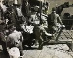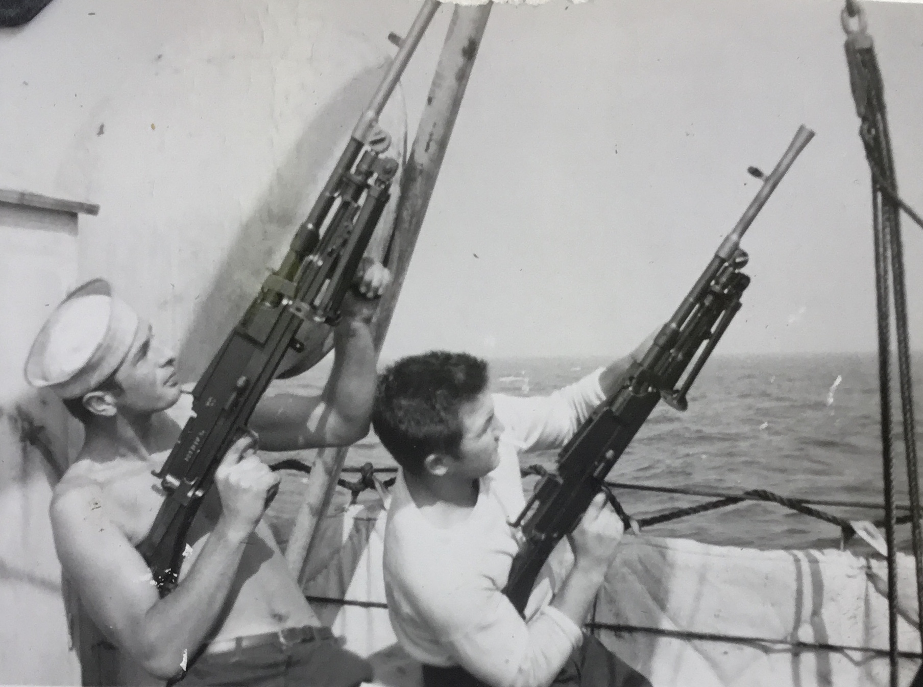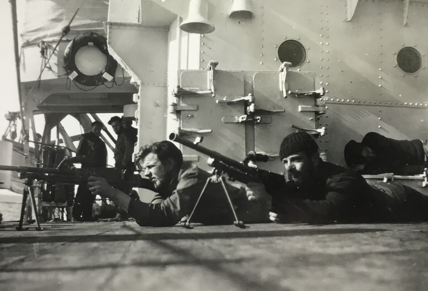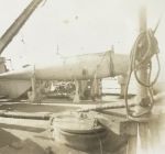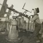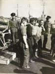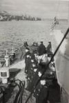 (HF48) Unknown sailors manning the pom-pom on HMCS SARNIA J309 (HF49) Unknown sailors posing with machinegun on the fo'c's'le of HMCS SARNIA J309. Note the sailor catching a nap on the right had side of the photo. (HF50) Unknown sailors on duty as Quartermaster (left) and jetty sentry on the jetty by HMCS SARNIA J309 (HF51) Unknown sailors working on the quarterdeck of HMCS SARNIA J309 (HF52) Unknown sailor relaxing on the quarterdeck of HMCS SARNIA J309