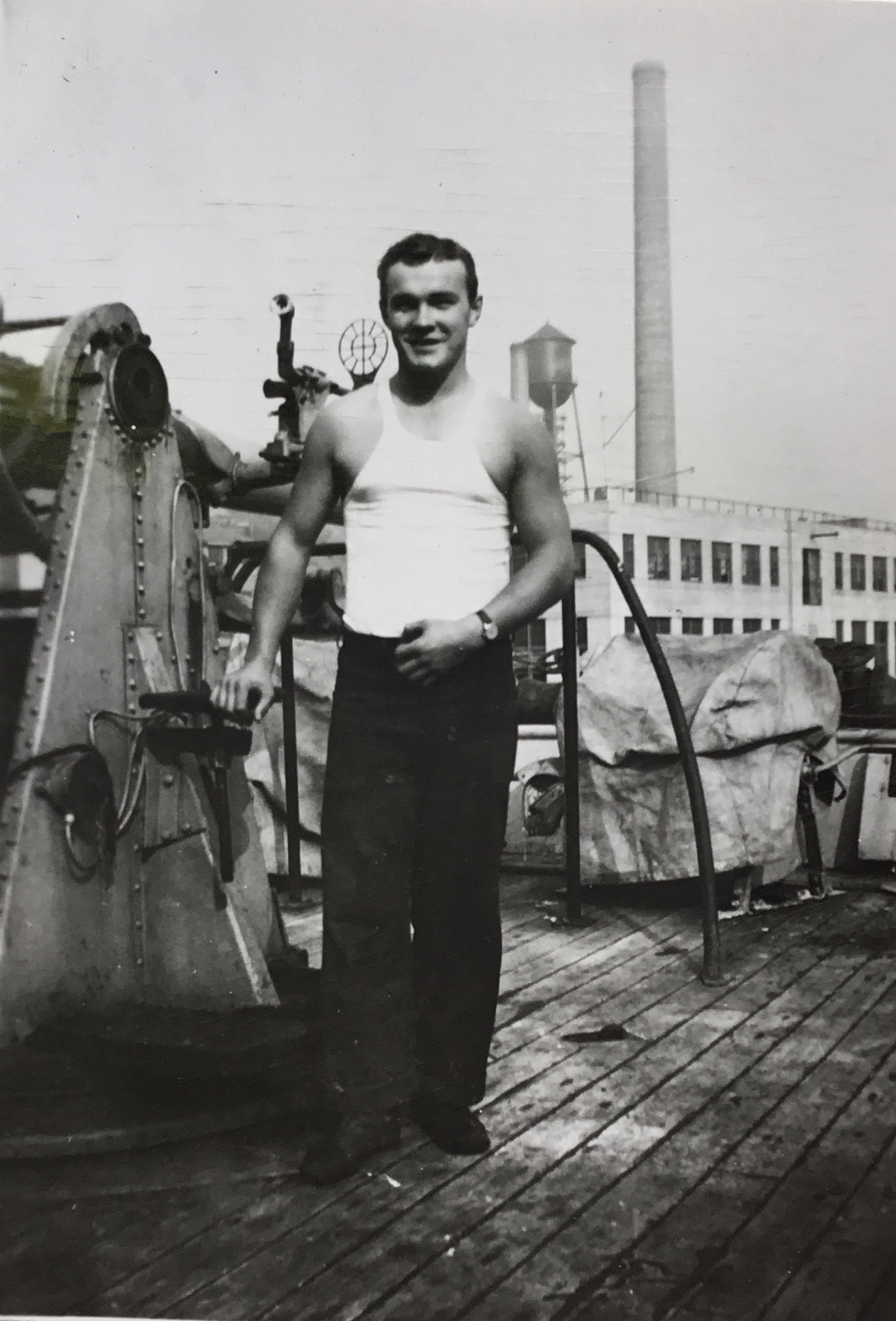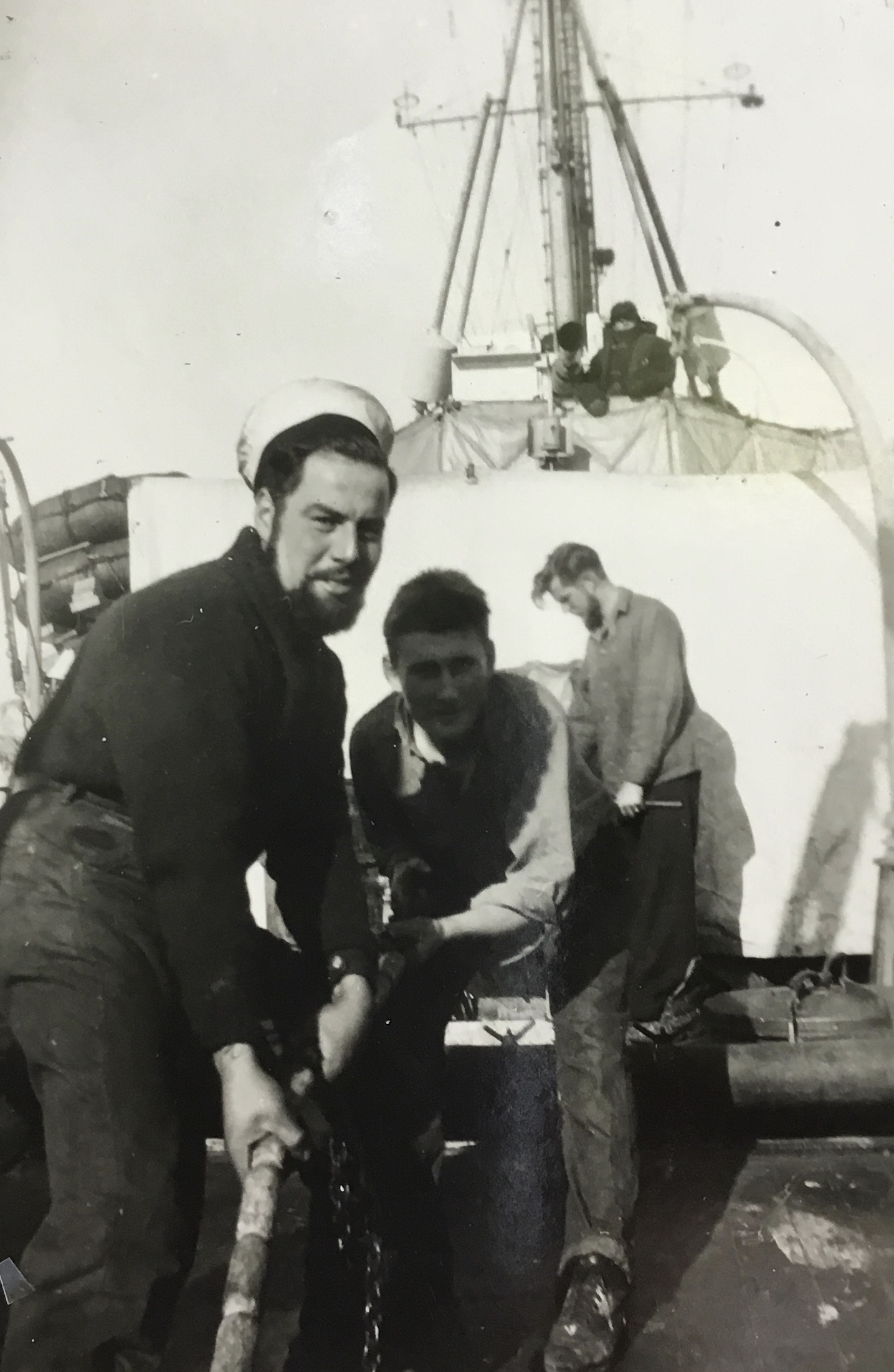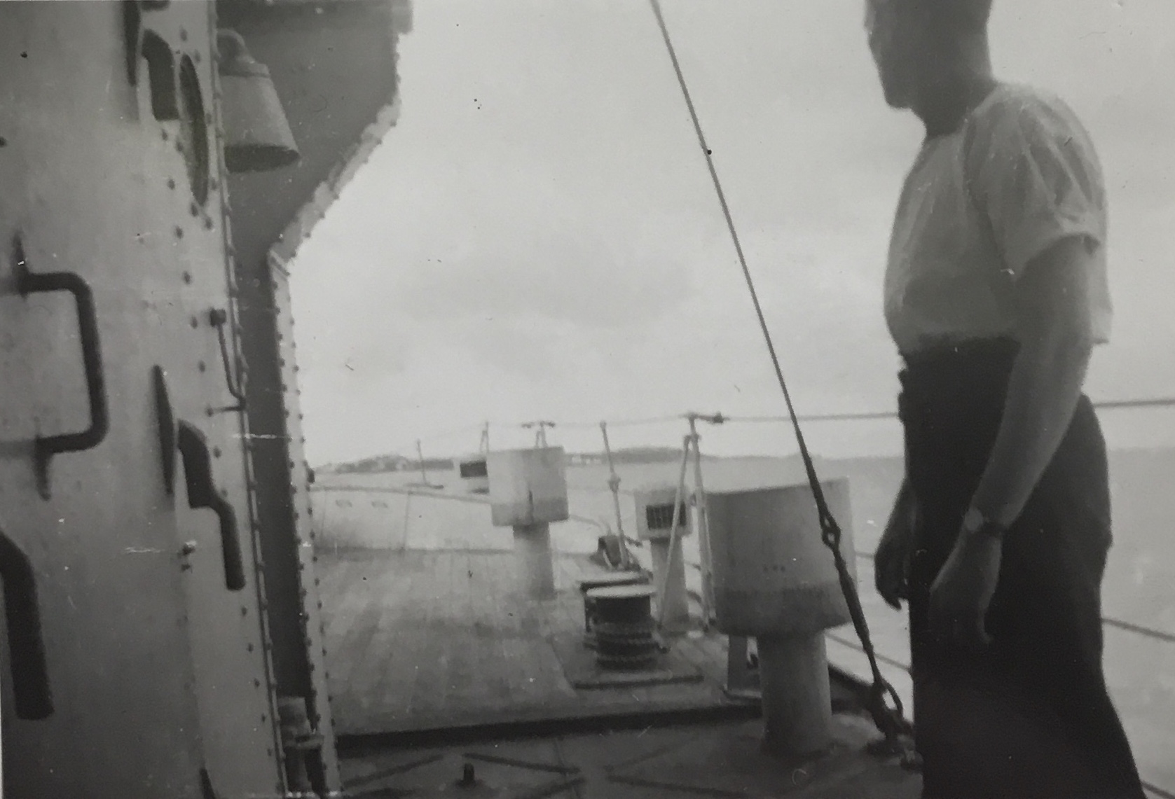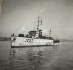 (HF38) Unknown sailor on HMCS SARNIA J309 - starboard side looking forward from under the bridge wing. (HF39) Unknown sailor on HMCS SARNIA J309 (HF40) Unknown ship in drydock at St. John's, Nfld (HF41) Unknown merchant ship as anchor in harbour, St. John's, Nfld (HF42) Unknown sailors on the fo'c's'le of HMCS SARNIA J309
