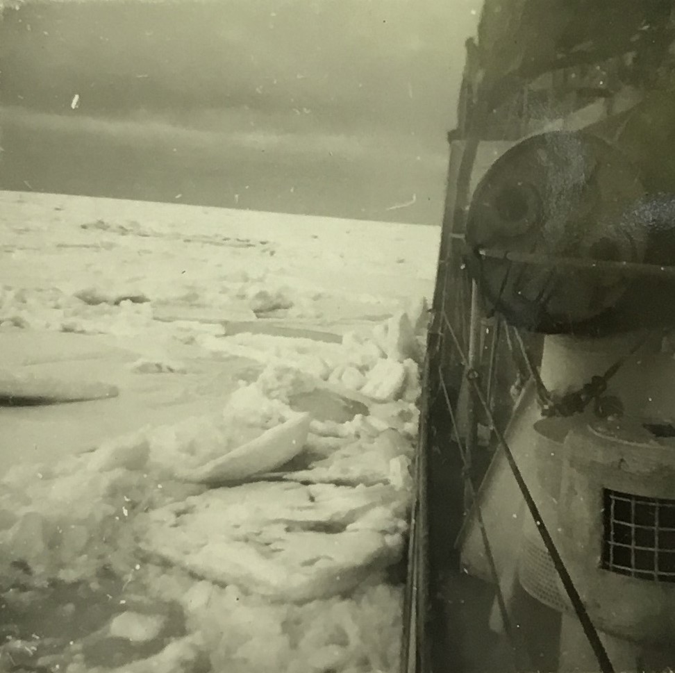 (HF13) "Sub Sighted" - British submarine N23 - St. John's Newfoundland (HF14) HMCS KENTVILLE J312 (HF15) SBA Howard Finkbeiner on HMCS SARNIA J309 (HF16) Unknown sailor with the ship's mascot on HMCS SARNIA J309 (HF17) HMCS SARNIA J309 transiting an ice field