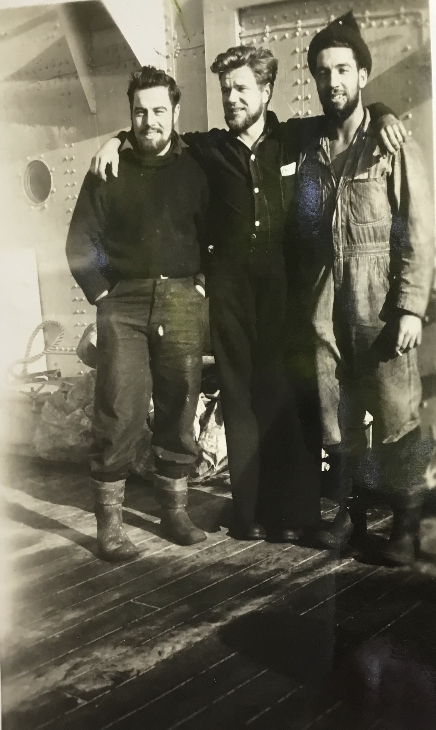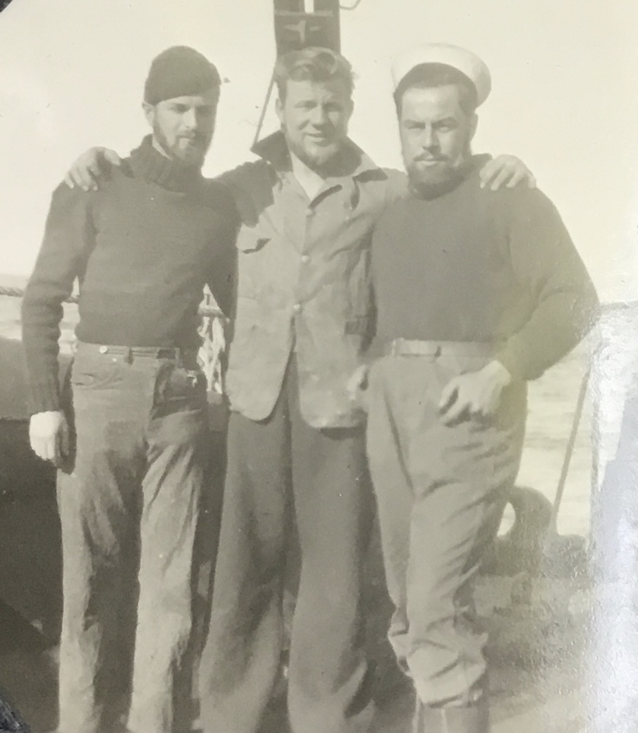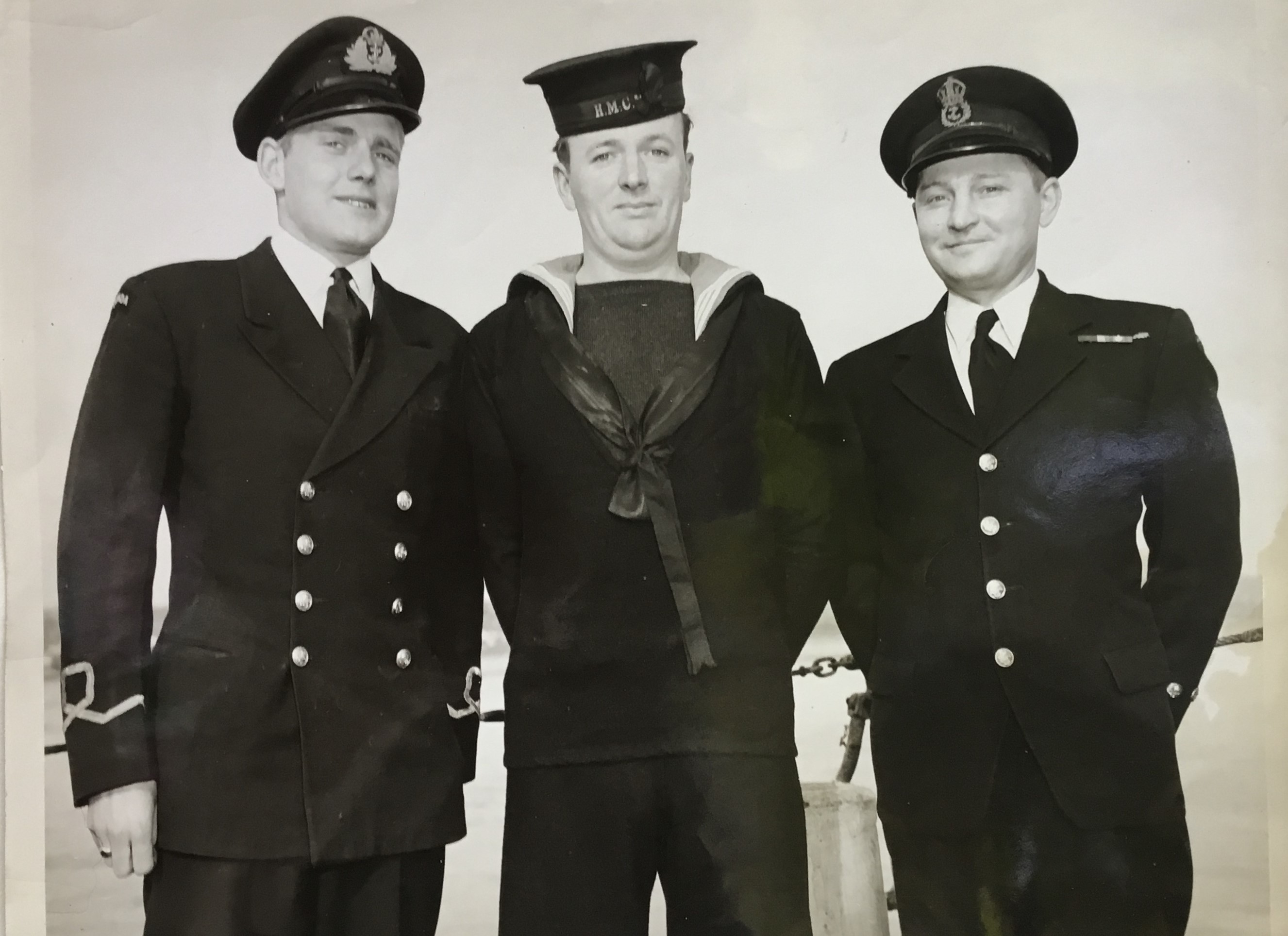 (HF19) Ted Balshaw (left) and Les Steadman on HMCS SARNIA J309 (HF20) Bruce Beaupit (left) and Bill Kestle on HMCS SARNIA J309 (HF21) L-R: Petrie (Pete), Tonkin (Tonk's) and Dargavel (Darts) on HMCS SARNIA J309 (HF22) Howard Finkbeiner (left) and Jean LaPointe on HMCS SARNIA J309