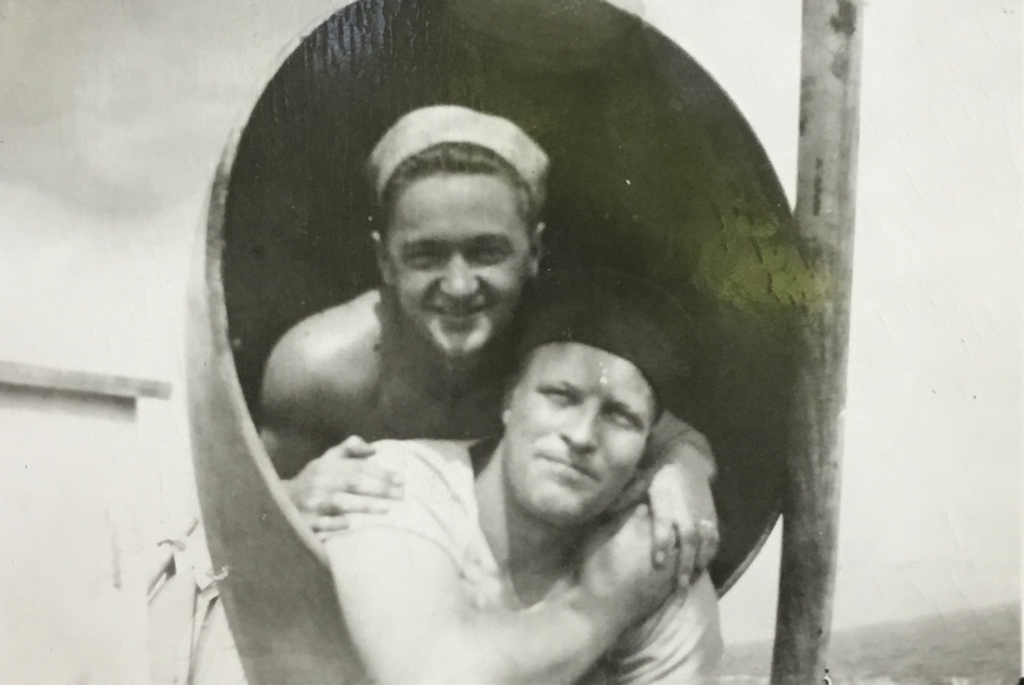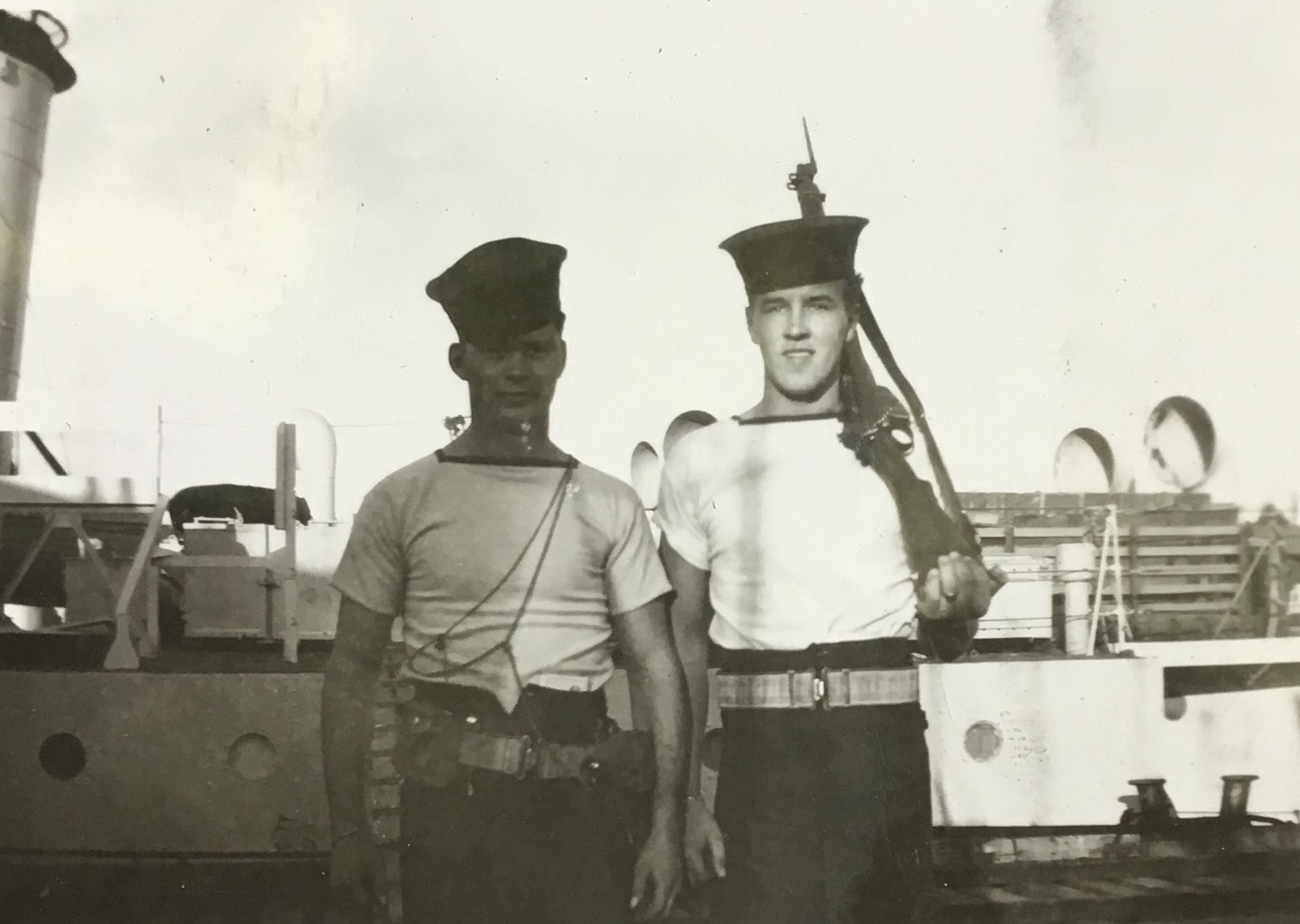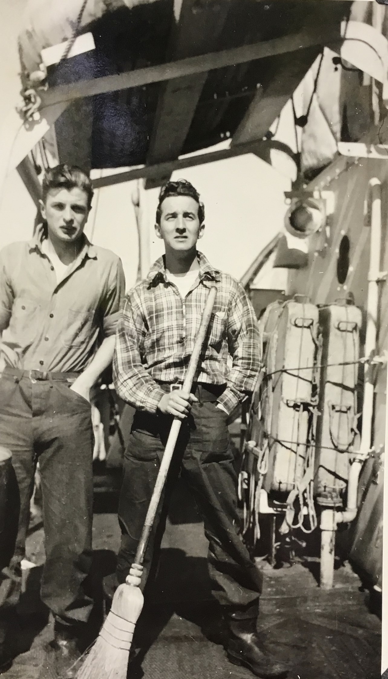 (HF19) Ted Balshaw (left) and Les Steadman on HMCS SARNIA J309 (HF20) Bruce Beaupit (left) and Bill Kestle on HMCS SARNIA J309 (HF21) L-R: Petrie (Pete), Tonkin (Tonk's) and Dargavel (Darts) on HMCS SARNIA J309 (HF22) Howard Finkbeiner (left) and Jean LaPointe on HMCS SARNIA J309