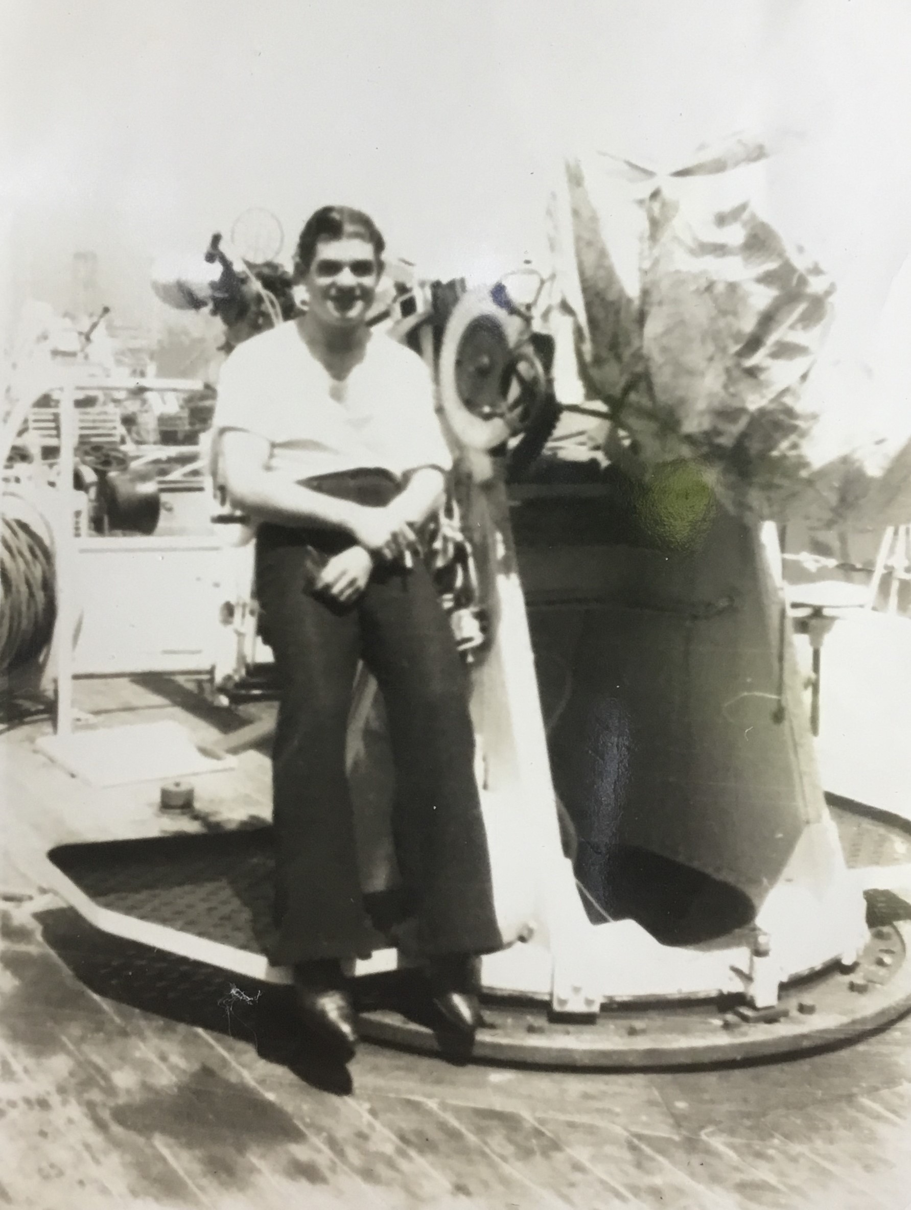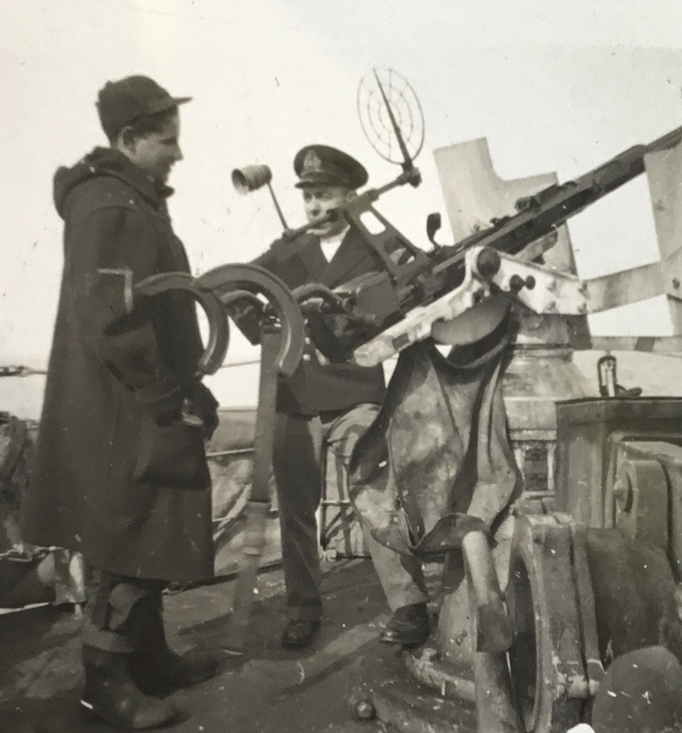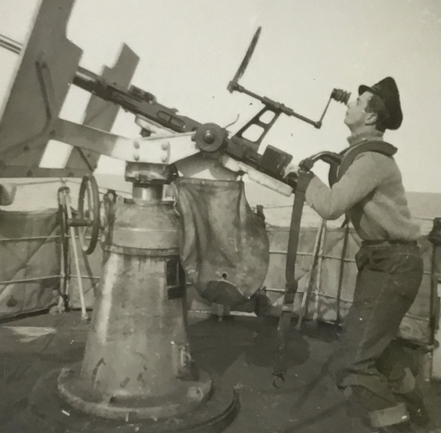 (HF43) Unknown sailor on HMCS SARNIA J309 (HF44) Telegraphist George Lawson - at sea on HMCS SARNIA J309 - April 1943 (HF45) Fo'c's'le of HMCS SARNIA J309 manned for entering Halifax harbour (HF46) A couple unknown sailors posing with machineguns on HMCS SARNIA J309 (HF47) Unknown sailor by the forward gun on HMCS SARNIA J309