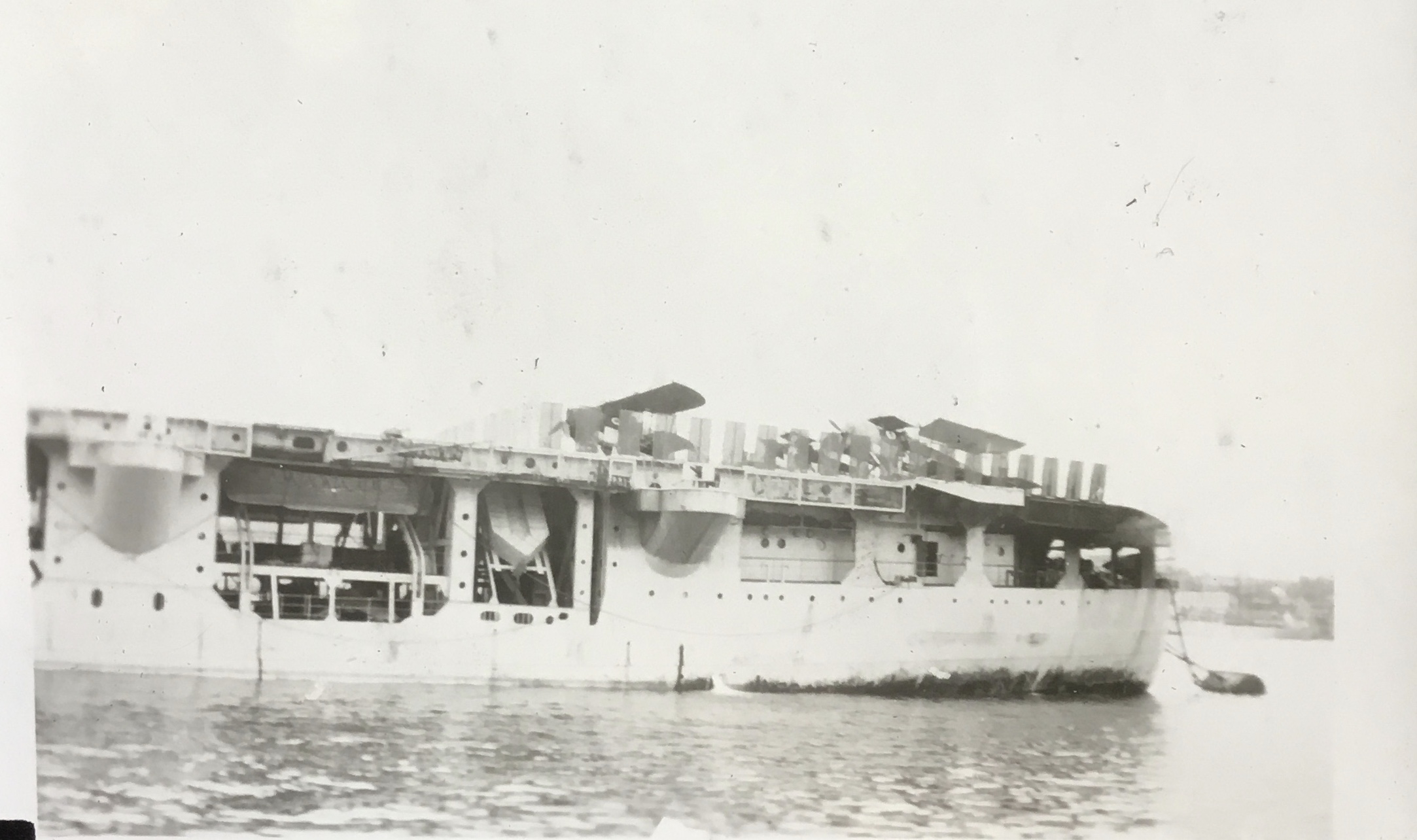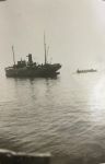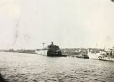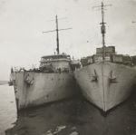 (HF73) An unknown Fairmile motor launch passing by HMCS SASKATCHEWAN H70. (HF74) HMCS SAGUENAY - crew on the fo'c's'le preparing her to be towed after her collision with the SS Azra (HF75) HMCS SAGUENAY - her stern missing after her collision with the SS Azra