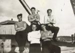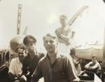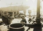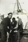 (HF28) Unknown sailors in an air intake on HMCS SARNIA J309 (HF29) Boat's crew in the whaler on HMCS SARNIA J309 (HF30-HF32) SBA Howard Finkbeiner (left) with 2 unknown shipmates on the quarterdeck of HMCS SARNIA J309
