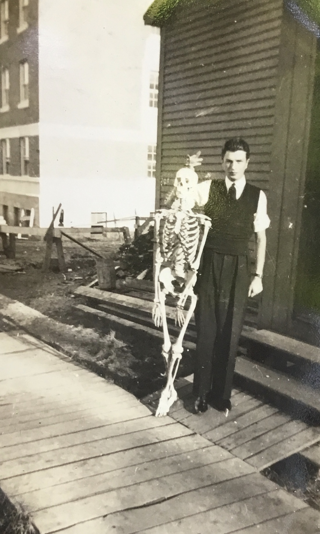 Training in Halifax (HF02) Howard Finkbeiner holding a skeleton while on course at STADACONA (HF03) Howard Finkbeiner "Myself in Operating Room"