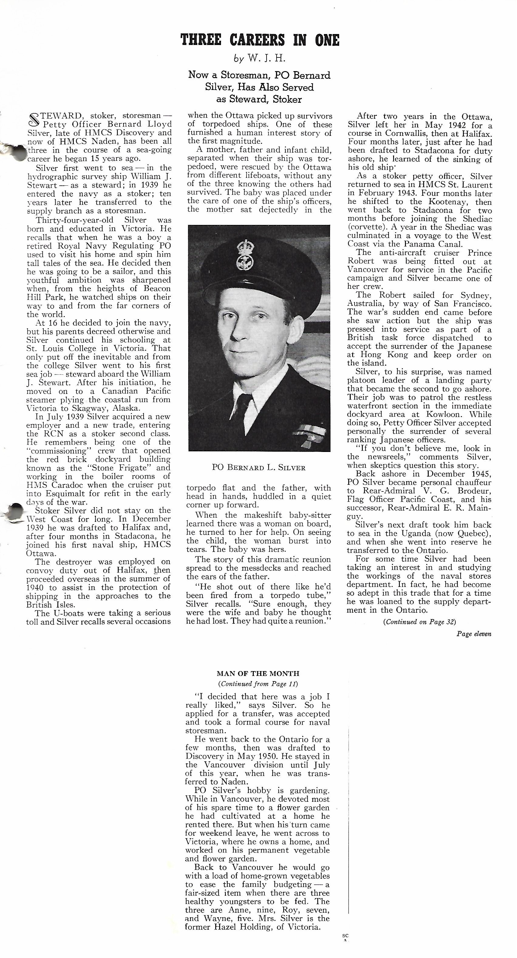 Ships served in: HMCS NADEN - Enlisted as a Stoker, RCN HMS CARADOC HMCS ST LAURENT - Served in ST LAURENT as a Stoker Petty Officer, RCN * Transferred to Supply trade HMCS NADEN - Drafted to NADEN 1952