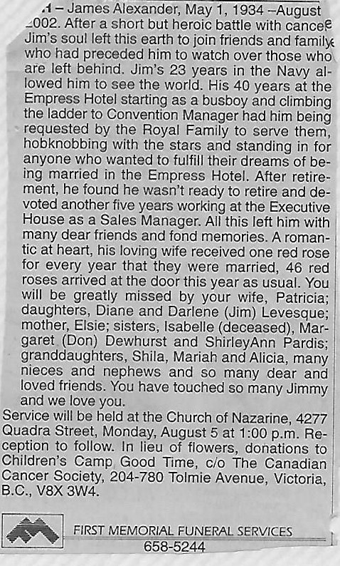Died: 01 Aug 2002, Victoria, British Columbia