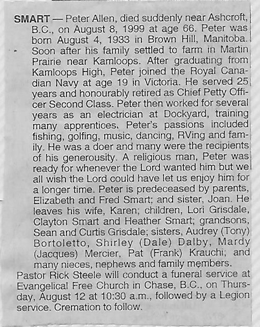 Died: 08 Aug 1999, (near) Ashcroft, British Columbia