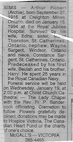 Born: 27 Sep 1916, Creighton Mines, Ontario