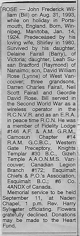 John Frederick William (Bill) Rose