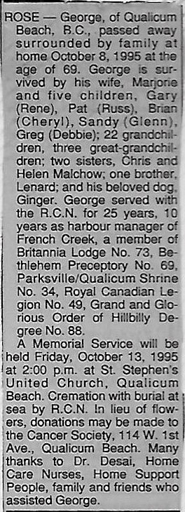 Died: 08 Oct 1995, Qualicum Beach, British Columbia