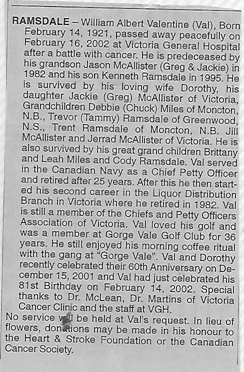 Born: 14 Feb 1921 Died: 16 Feb 2002