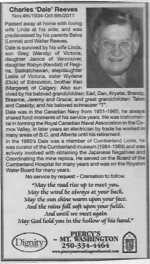 Died: 06 Oct 2011, Union Bay, British Columbia