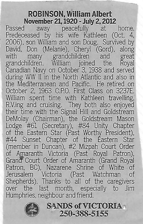 Served in the RCN 30 Oct 1938 - 02 Oct 1963