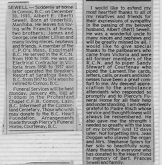 Died: 30 Dec 1981, Comox, British Columbia
