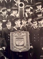 (2) Photo of Arthur Bell holding HMCS Skeena's badge