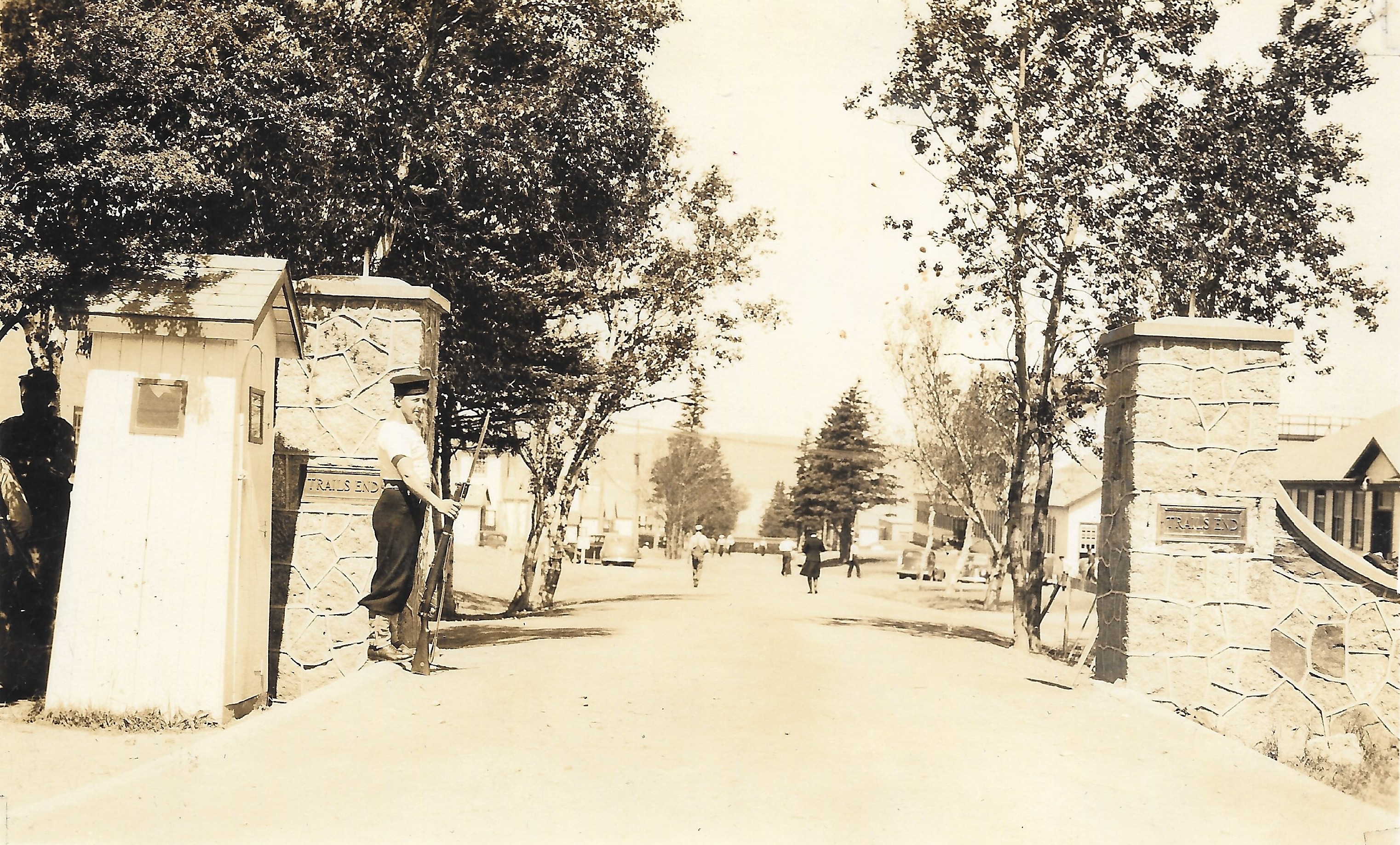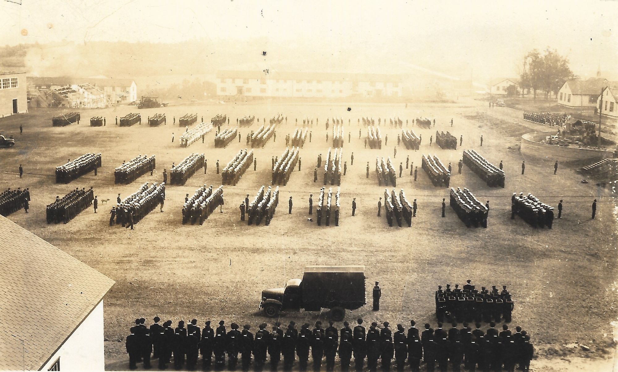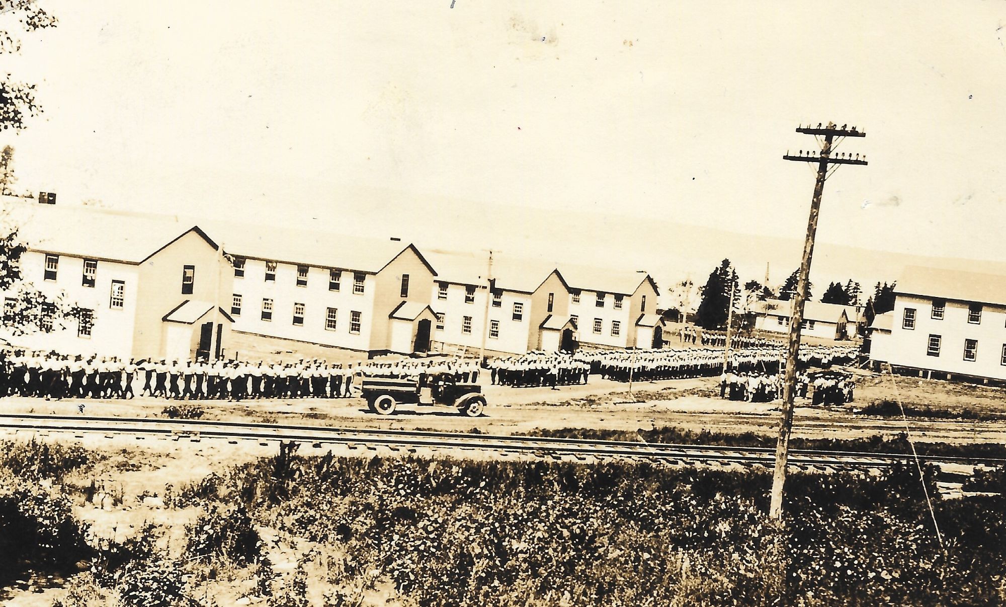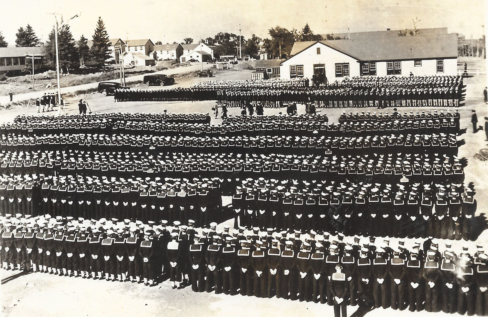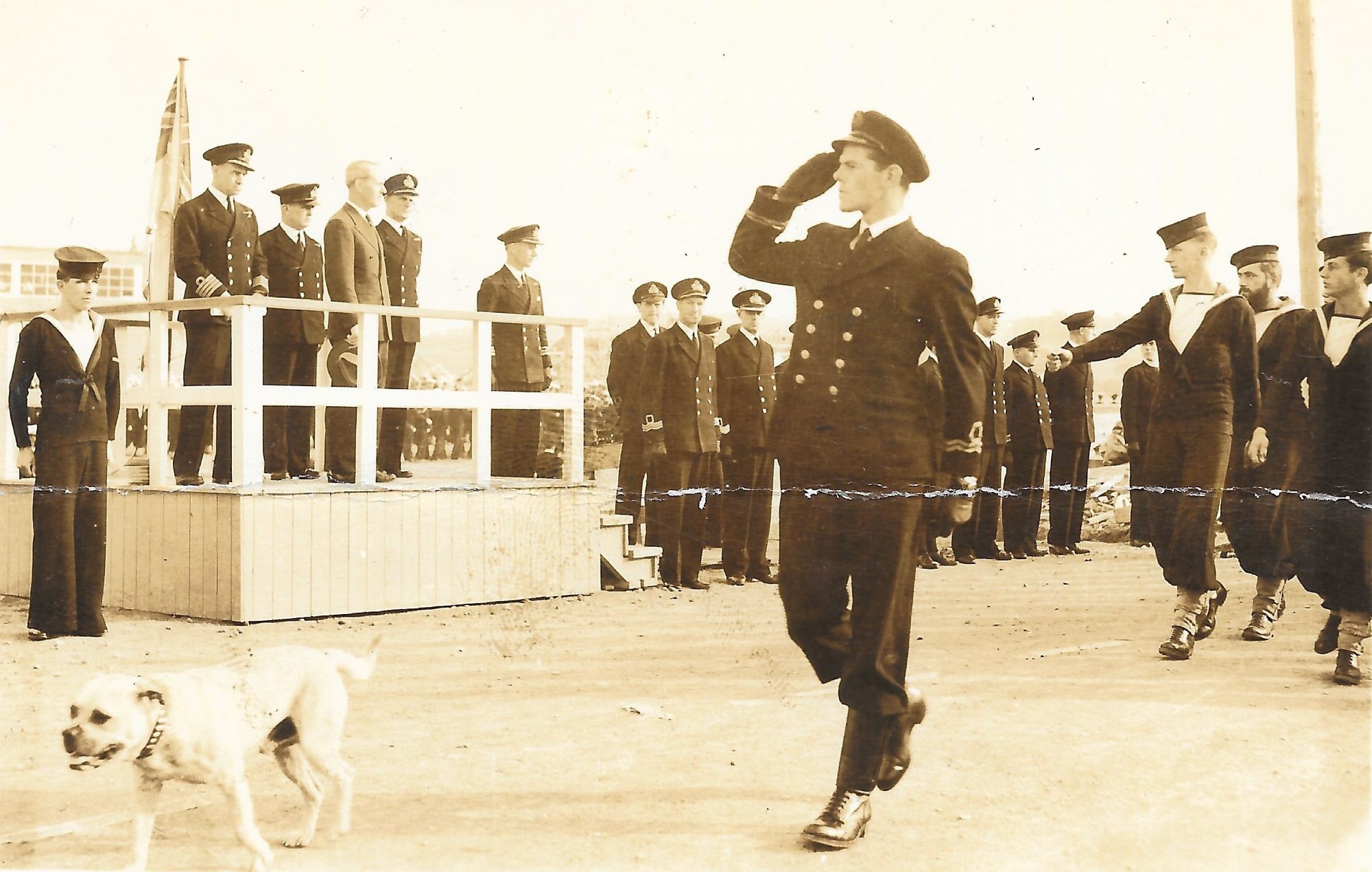 Base Commander's quarters (...) Sunday Divisions - Jun 1944 (...) Main gate to HMCS CORNWALLIS (...) Parade march past led by the mascot of HMCS CORNWALLIS