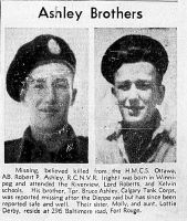 ASHLEY, Robert Pinder, AB, V9615, RCNVR, MPK - 13 Sep 1942, HMCS OTTAWA - Son of Thomas and Freda Glydes Ashley. Brother of Molly Ashley, 296 Baltimore Rd, Winnipeg, MB.