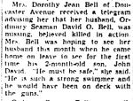 OS Bell died when HMCS OTTAWA H60 was torpedoed and sunk by U-91 on 13 Sep 1942. Of her crew of 175, plus 50 survivors they had picked up, there were only 69 survivors.