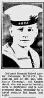 (RC01) Portrait for OS Robert Cavanagh (RC02) Article on the death of OS Robert Cavanagh (RC03) Article on the RCN's 4 casualties from the Dieppe Raid (RC04) Documents from the Service File of Robert Cavanagh (RC05) Headstone for Robert Cavanagh // Source CVWM (VAC)