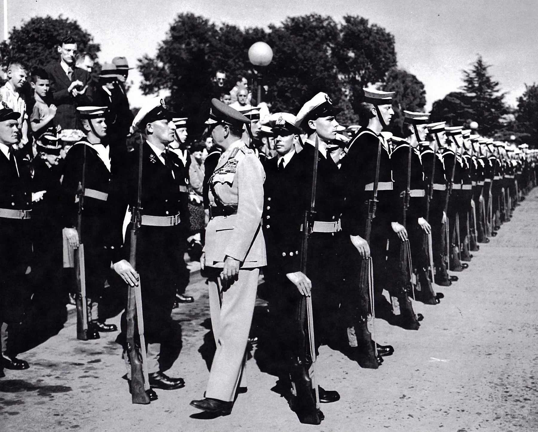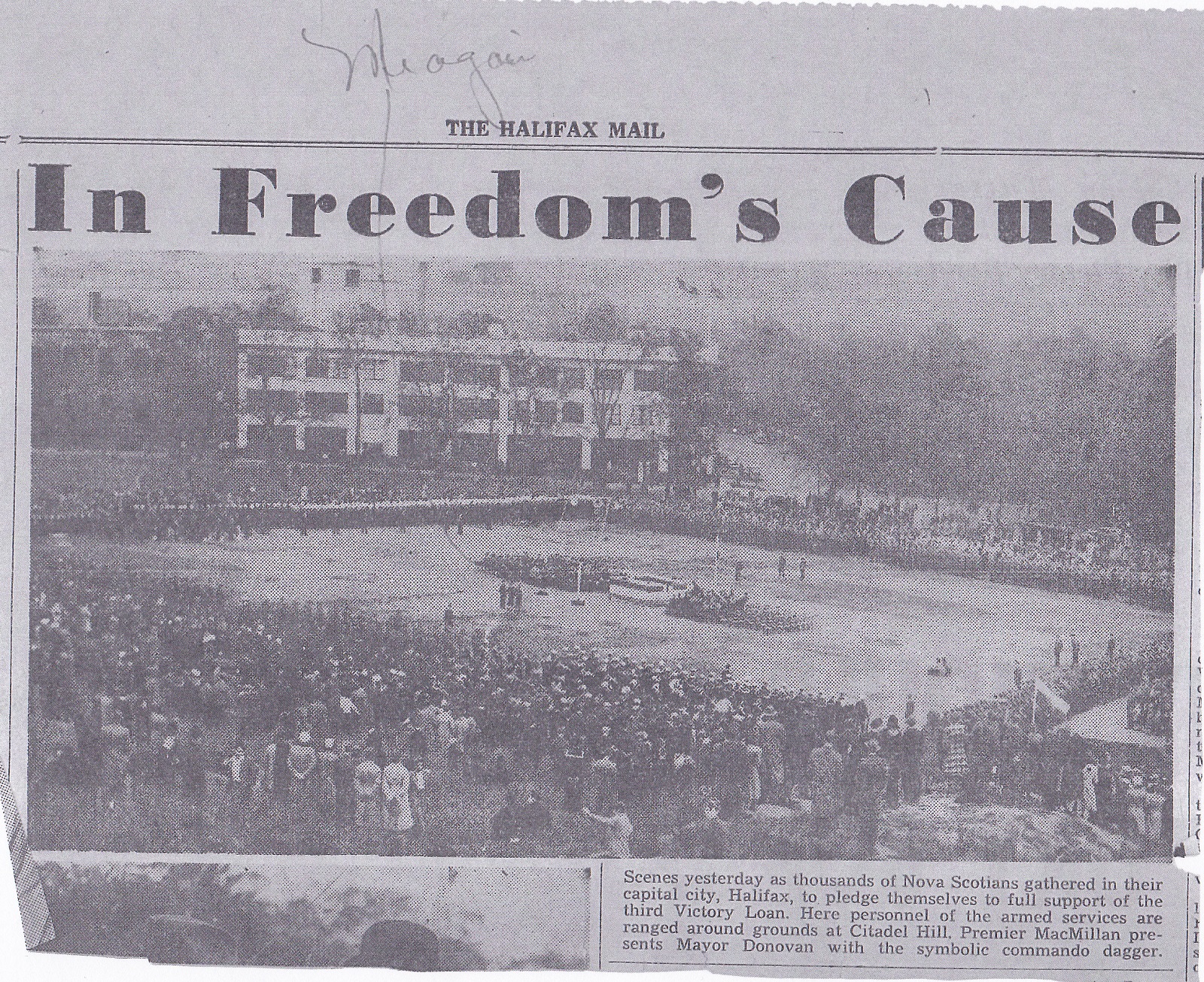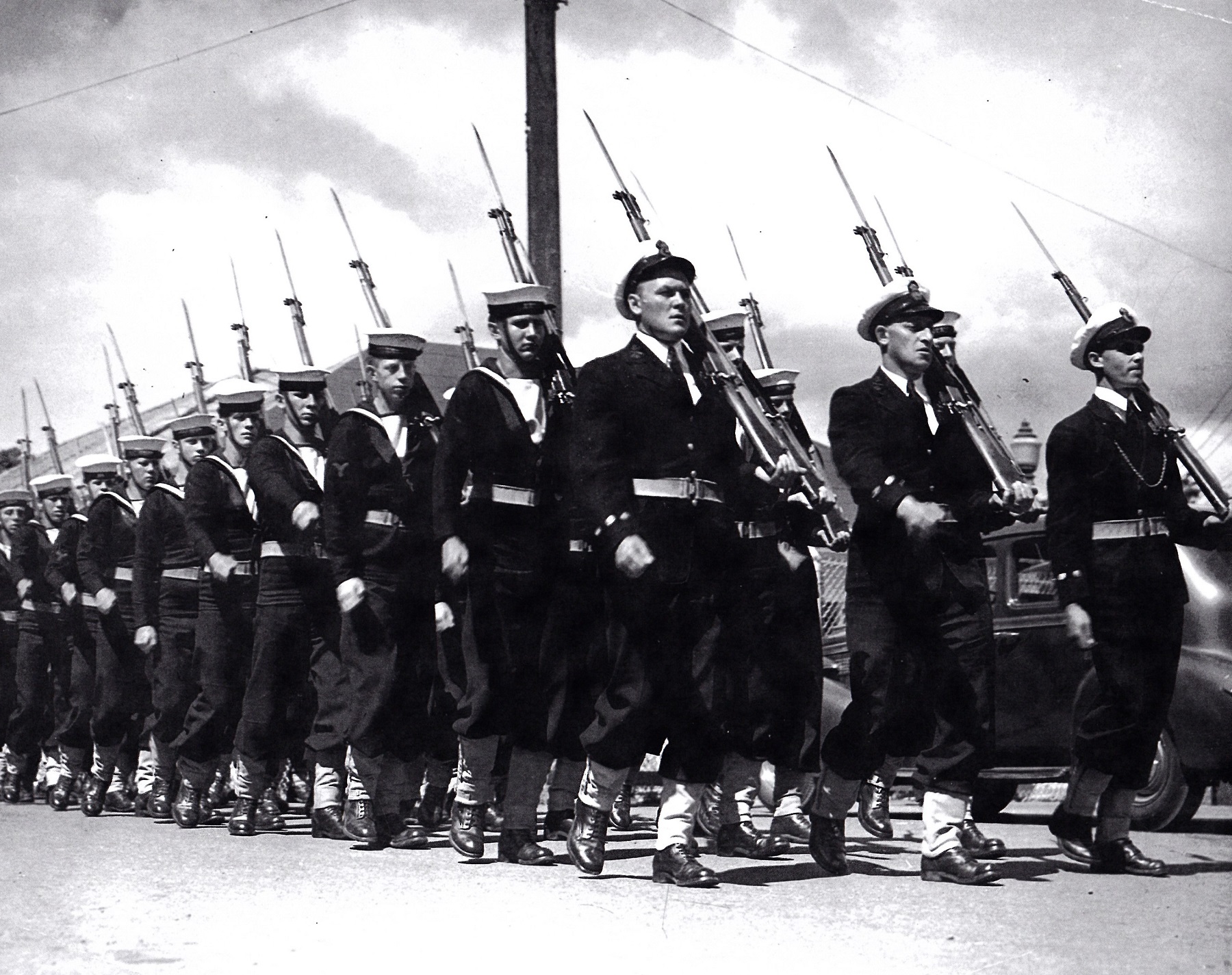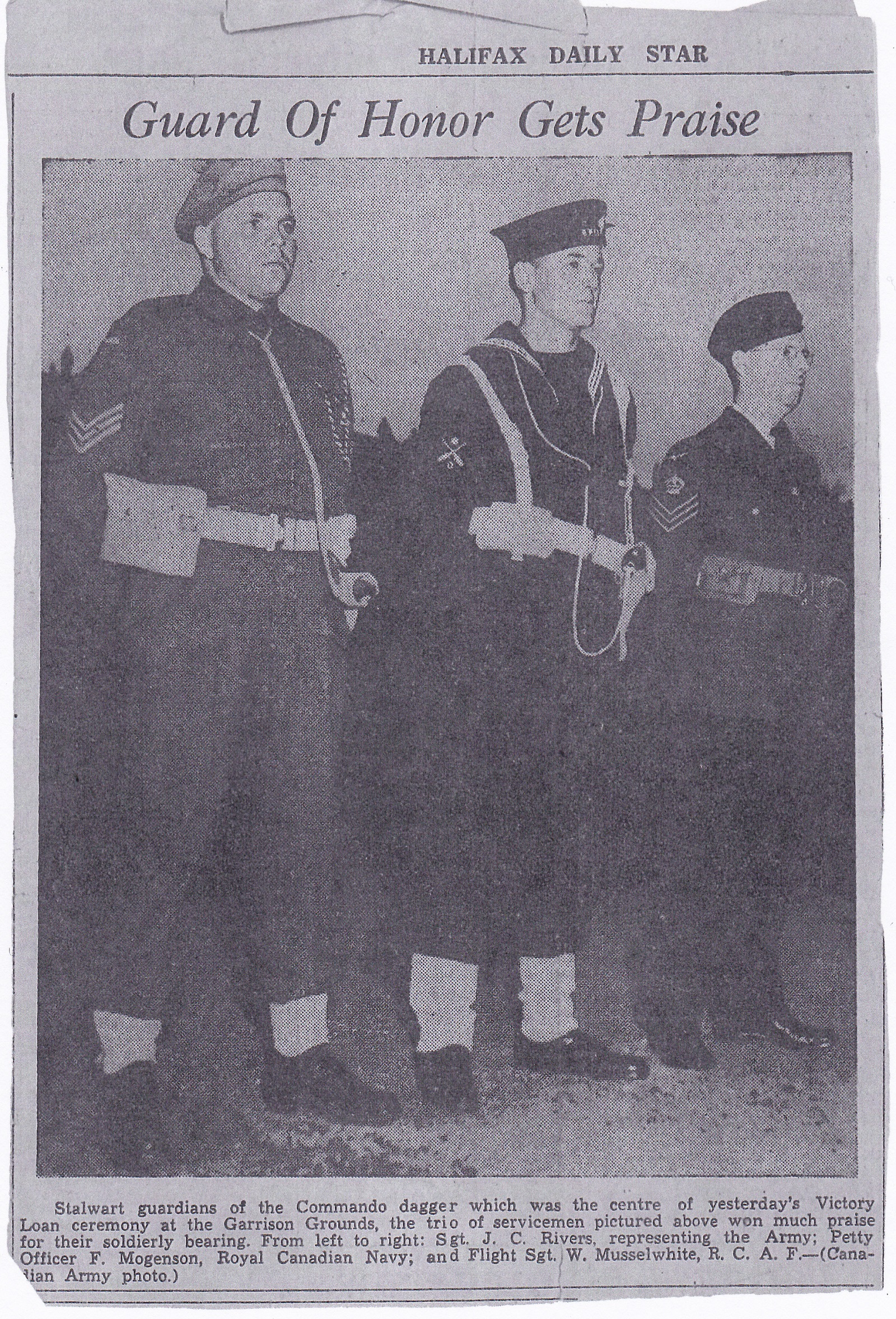 (MOG004) Victory Loan Parade in Halifax - PO Mogensen leading (M0G005) Victory Loans event / ceremony at Citadel Hill, Halifax (MOG006) RCN Ceremonial Divisions at HMC Dockyard Halifax for visiting members of parliament (MOG007) Guard being inspected, CPO Mogensen 3rd row, 1st on left (MOG008) CPO Mogensen right rank, marker